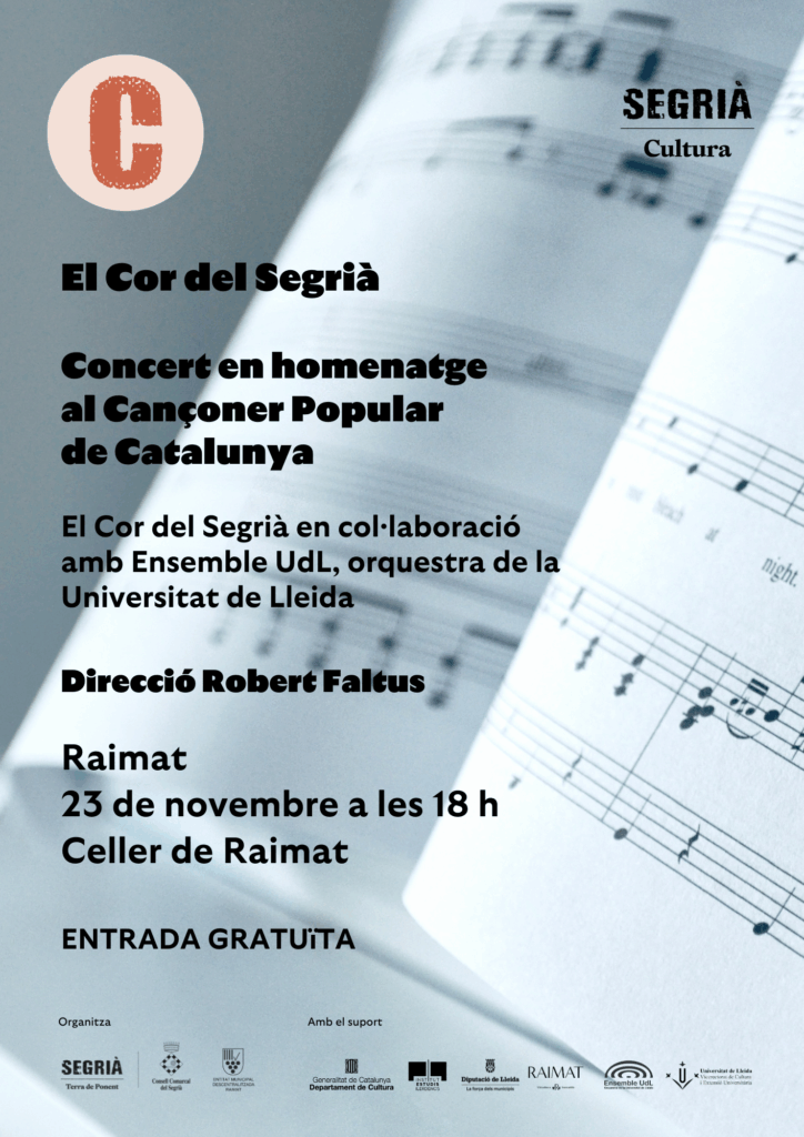 Enguany Raimat té la sort de ser la seu del Cor del Segrià, un concert que es celebra cada dos anys i que en aquesta edició ret homenatge al cançoner popular català.